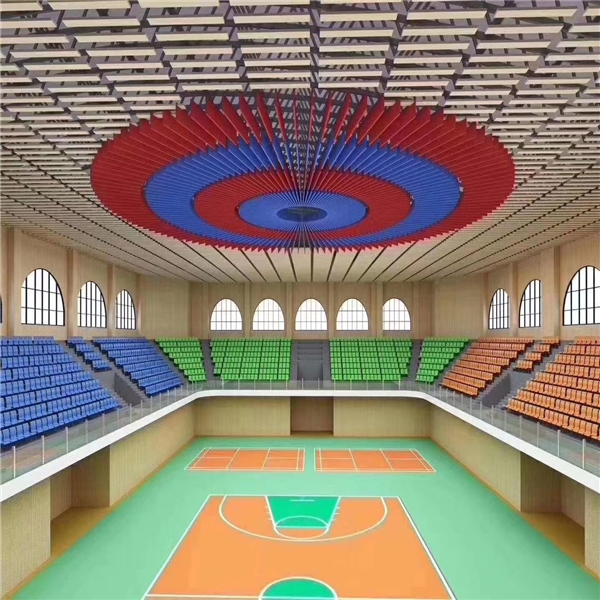 凱音吸聲體是專用于體育館空間吸聲裝飾作用的功能性裝飾材料,是一種分散懸掛于建筑空間上部,用以降低室內(nèi)噪聲或改善室內(nèi)音質(zhì)的吸聲構件。空間吸聲體具有用料少、重量輕、投資省、吸聲效率高、布置靈活、施工方便的特點。